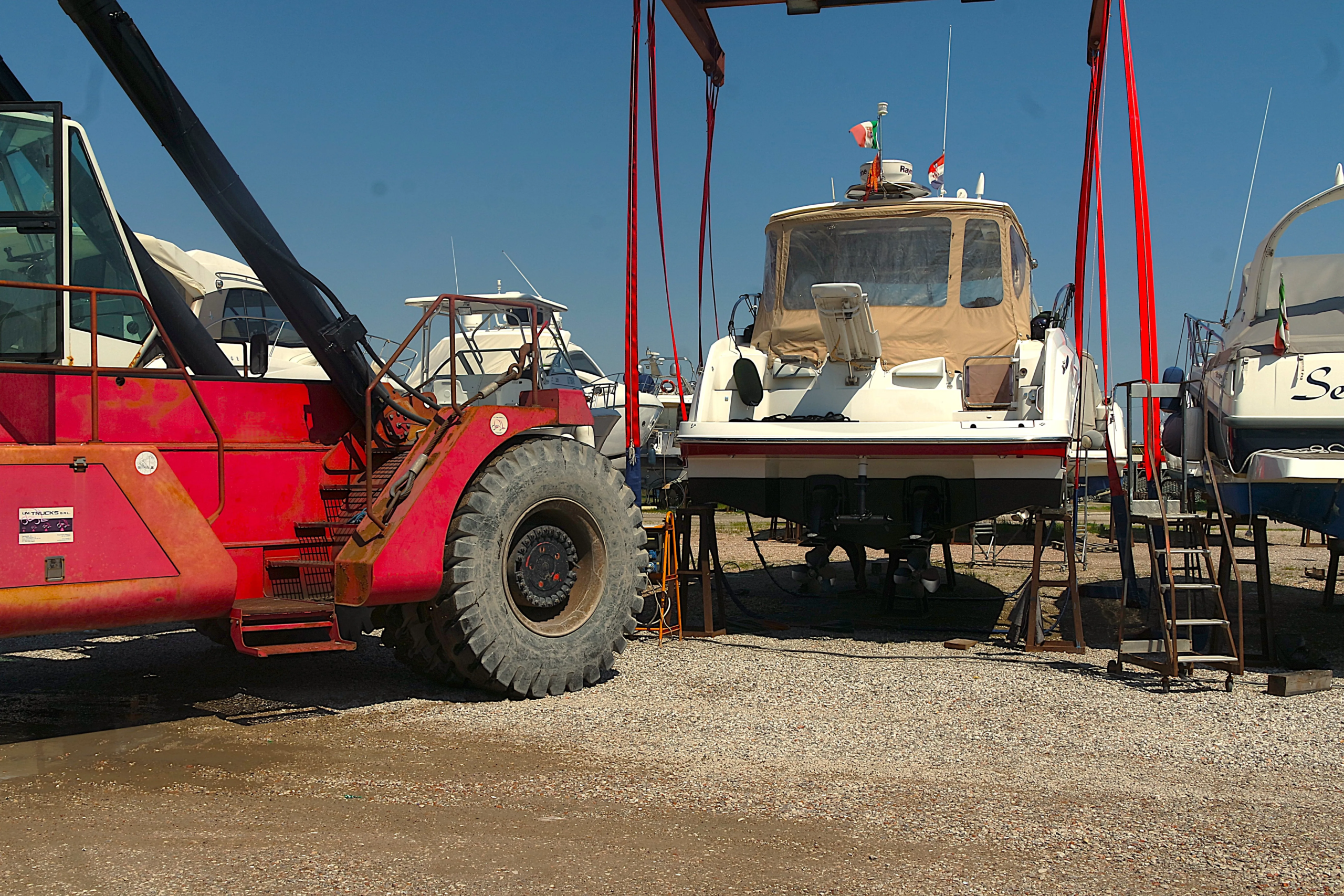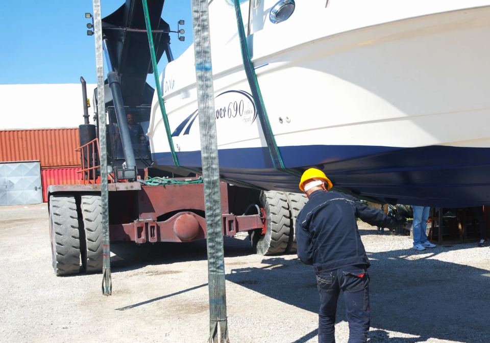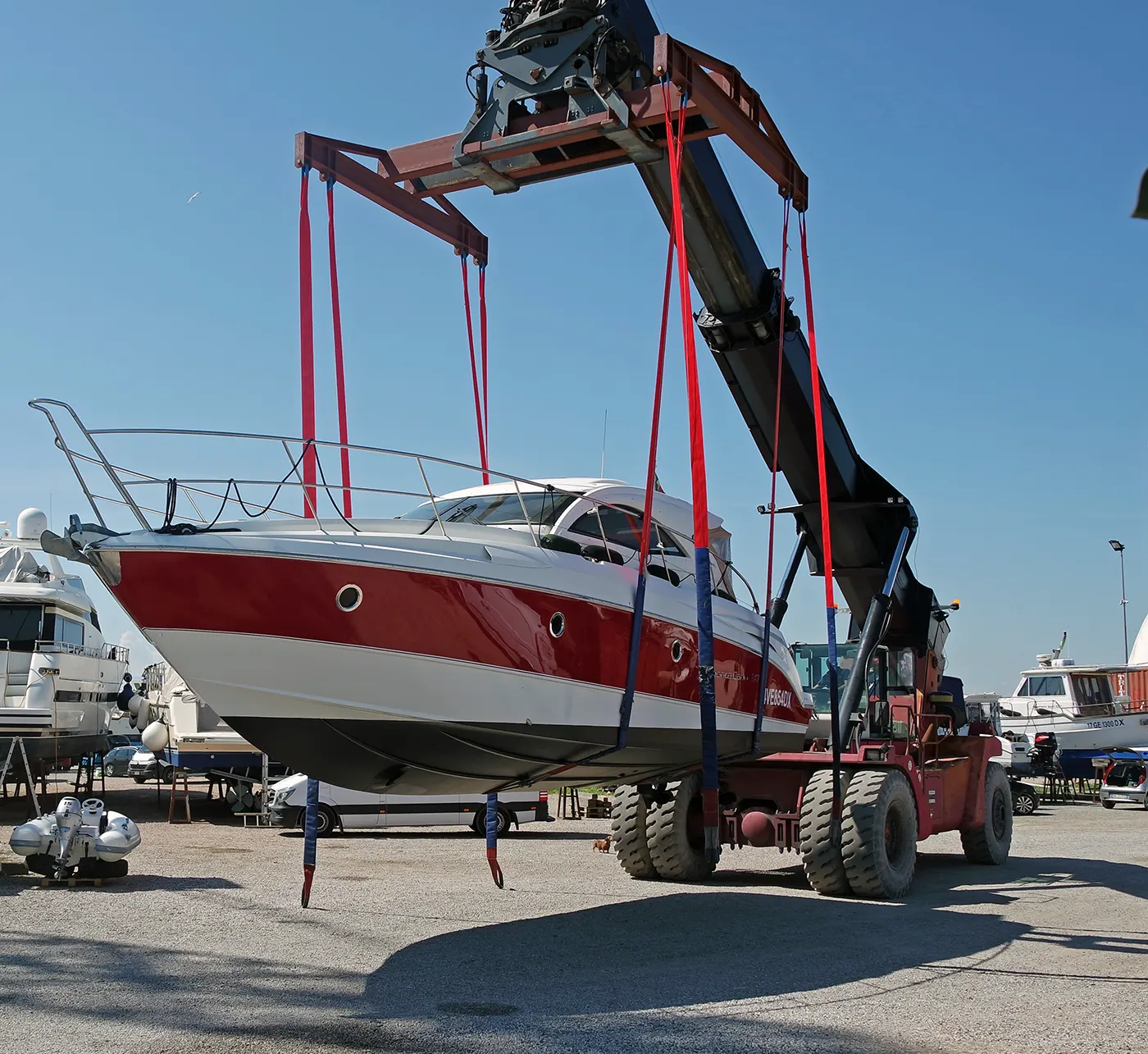 Per la movimentazione degli scafi disponiamo di attrezzature avanzate, tra cui gru mobili da 50 tonnellate per sollevare imbarcazioni in modo sicuro. Utilizziamo anche carri trasportatori idraulici per lo spostamento degli scafi più grandi, garantendo efficienza in ogni operazione.