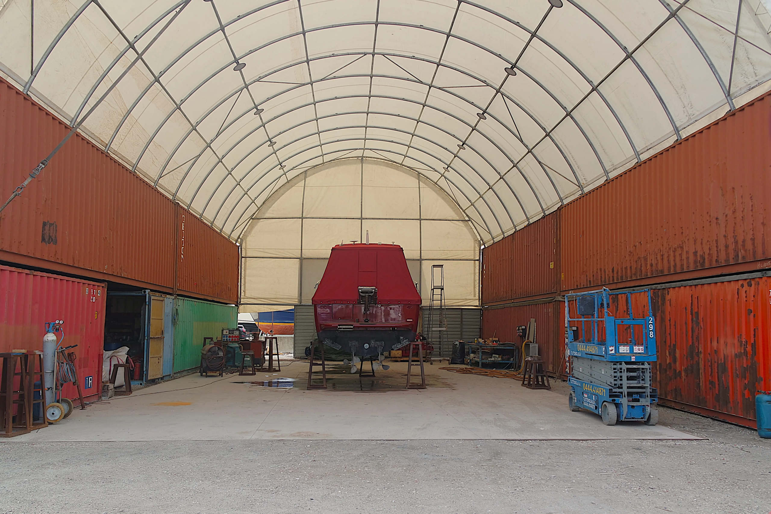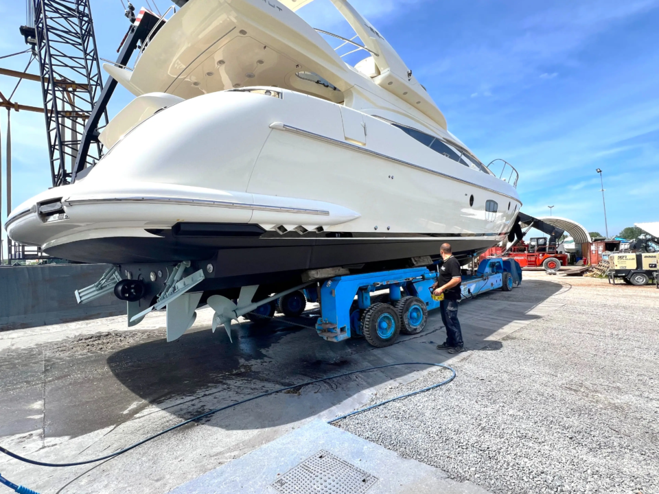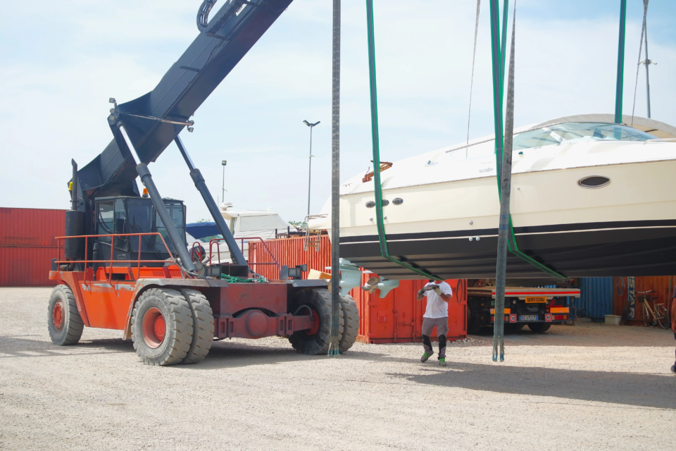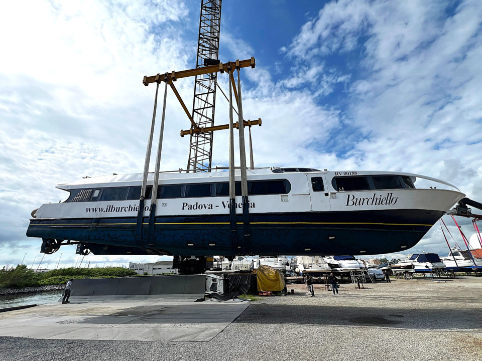 Per la movimentazione degli scafi disponiamo di attrezzature avanzate, tra cui gru mobili da 50 tonnellate per sollevare imbarcazioni in modo sicuro. Utilizziamo anche carri trasportatori idraulici per lo spostamento degli scafi più grandi, garantendo efficienza in ogni operazione.